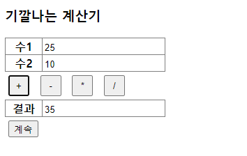 <input type="button" value="계속" id ="con" onclick="continueCalculation();">