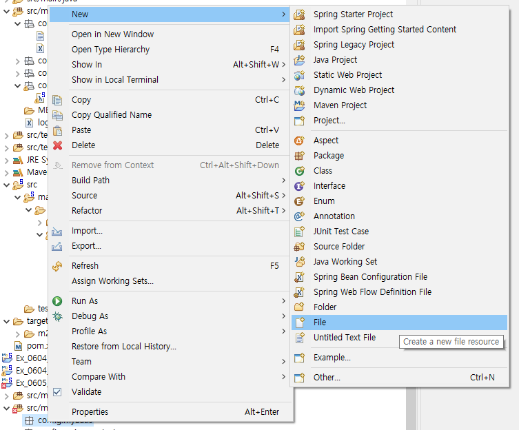 2. 1) src/main/resource 폴더에서 config.spring.context 패키지를 만든다. 이때 패키지명은 꼭 config.spring.context가 아니어도 된다.