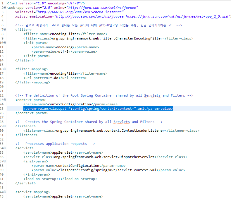 4. 3) web.xml 파일에서 servlet-context를 실행하는 경로를 수정한다.