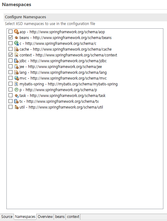 1. 2) Namespaces 탭에서 context를 체크해주고 다시 Source탭으로 돌아온다.